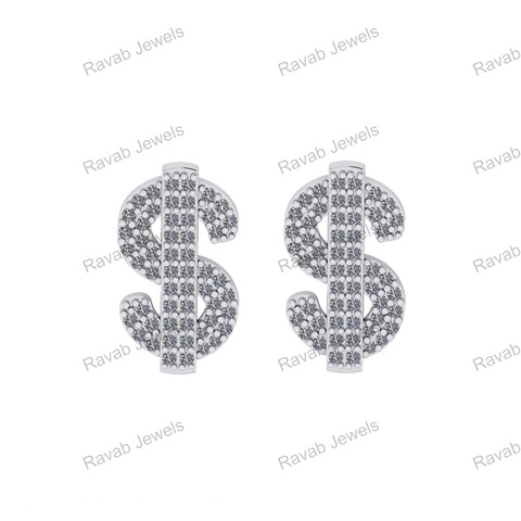 Trendy 925 Sterling Silver Dollar Sign Stud Earring Zircon Custom Size Perfect Party Gift for Women Factory Price Made In India